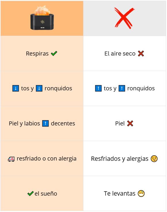 El humidificador cuenta con numerables beneficios para tu sueño. Además es silencioso y se apaga automáticamente y consume muy poco, para no estropear tu sueño.